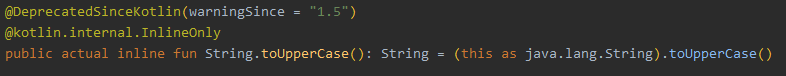 Kotlin 문자열에서 대소문자의 변환은 uppercase()와 lowercase() 메소드로 할 수 있다. 이 두 메소드는 각각 Java의 toUpperCase(), toLowerCase()와 내부적으로 완전히 동일한 메소드이다.