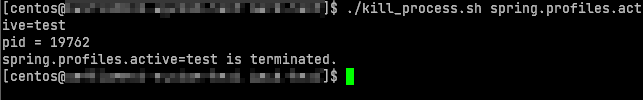 실제 업무 환경에서는 이러한 프로세스 종료와 더불어 동일한 프로젝트 파일을 다시 실행시키는 동작까지 수행하는 쉘 스크립트를 작성하여 사용하고 있다. 이 부분에 대해서는 어떤 파일을 실행하느냐에 따라 쉘 스크립트에 추가되는 내용이 달라지기 때문에 추가적으로 다루지는 않았다.