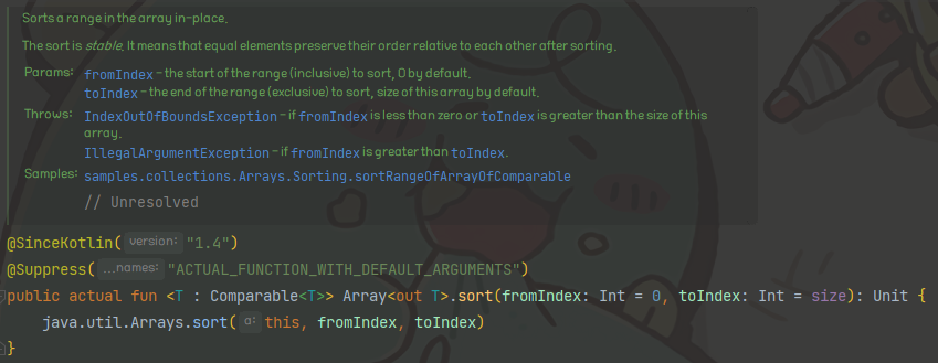 기본적으로 코틀린에서는 배열도 객체로 취급되어 sort()와 같은 메소드를 사용할 수 있다. 그런데 이들 메소드들은 종류에 따라 약간의 차이가 있고, 메소드를 호출한 객체의 타입과 메소드의 종류에 따라 성능도 차이난다.