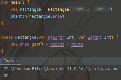 다만 코틀린의 경우에는 실제 멤버 변수가 존재하지 않더라도 커스텀 Getter를 통해 프로퍼티를 정의할 수 있다. 아래와 같은 Rectangle 클래스에서 area는 변수처럼 선언되었지만 실제로 존재하는 변수가 아니다.