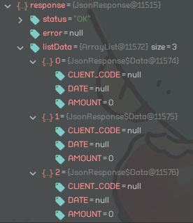 그런데 status와 listData의 개수는 잘 받아지는데 정작 listData에 담긴 객체들의 정보는 전혀 담기지 않았다. Data의 내용만 빼면 전부 잘 들어오고 있어서 방법이 틀리진 않은 것 같은데 정작 Data의 내용이 전혀 들어오지 않고 있어서 해결법을 찾아봤다.