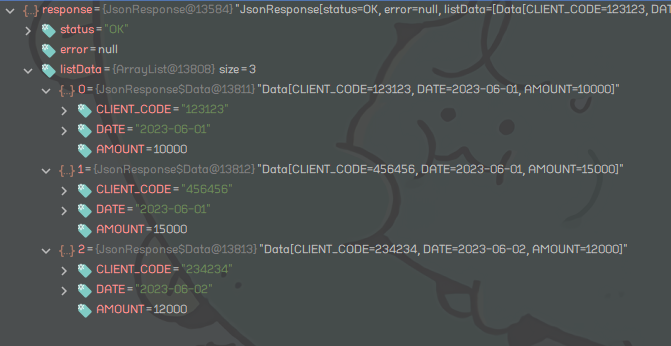 Record 클래스를 사용하면 아무 문제 없이 JSON의 데이터가 바인딩 되는 것을 확인할 수 있다.