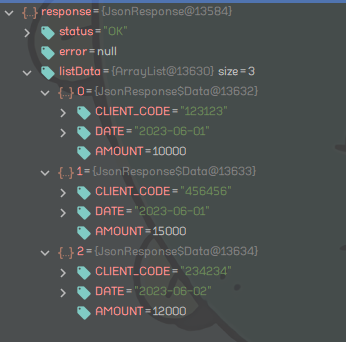 그리고 아래와 같이 API를 호출하는 코드를 수정하여 응답해주는 JSON을 받아보았다.