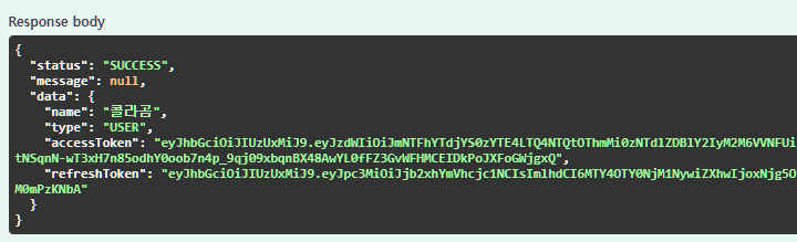 실제로는 사용자가 로그아웃할 때 리프레시 토큰을 삭제해야 하지만 프론트 화면을 구성하지 않고 스웨거로만 구성했기 때문에 이 부분은 생략했다.