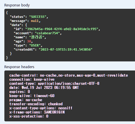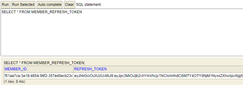 실제로는 사용자가 로그아웃할 때 리프레시 토큰을 삭제해야 하지만 프론트 화면을 구성하지 않고 스웨거로만 구성했기 때문에 이 부분은 생략했다.
