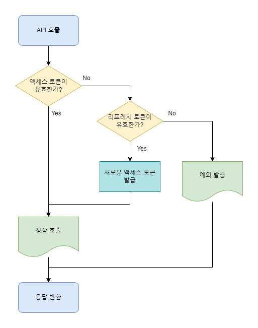 - 클라이언트에서 API를 호출하면 액세스 토큰이 유효한지 검사한다.