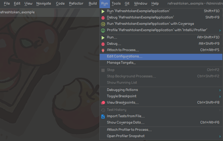 상단 메뉴에서 Run → Edit Configurations...로 들어간다.