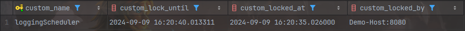 withLockedByValue에는 locked_by에 기록할 잠금을 얻은 주체를 설정해주면 됩니다. 기본값은 인스턴스의 호스트 이름이며, 위 예시에서는 호스트 이름 뒤에 애플리케이션이 가동되고 있는 포트를 추가로 붙여서 기록하도록 설정하고 있습니다.