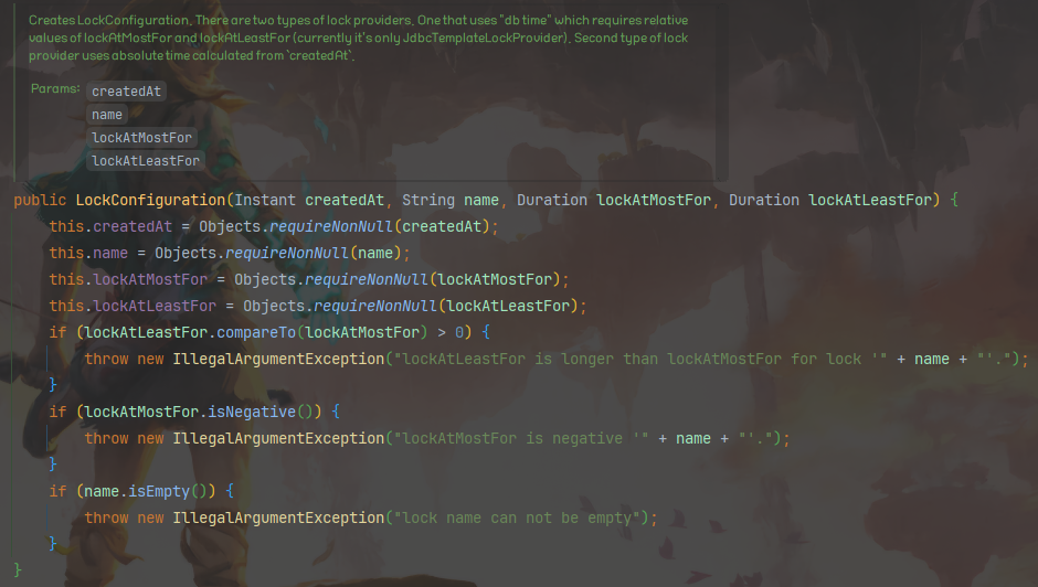 LockConfiguration 생성자는 다음과 같이 정의되어 있습니다.