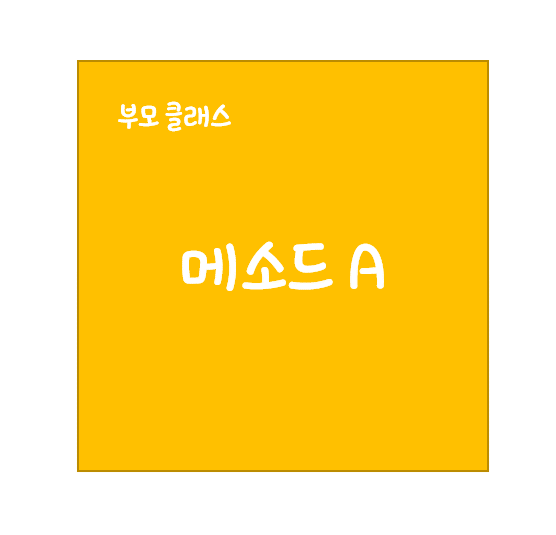 부모 클래스에 A라는 메소드가 있는데, 자식 클래스에서 이를 자식 클래스만의 메소드 A로 덮어 쓴 것이라고 볼 수 있다. 오버라이딩의 예시는 다음과 같다.