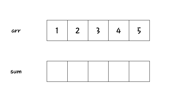 일반적으로 배열의 \(n\)번째 인덱스까지의 합을 구할 땐 아래와 같이 반복문을 사용하여 계산하게 된다.