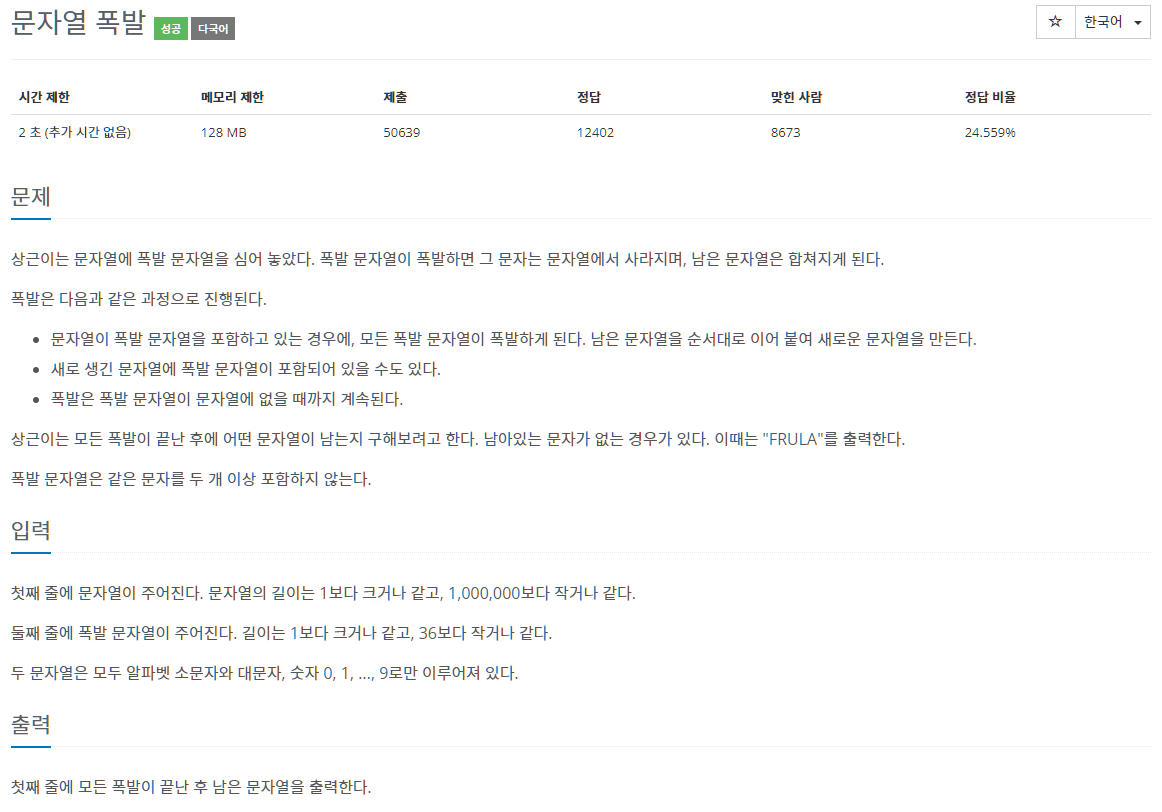 9935번: 문자열 폭발
