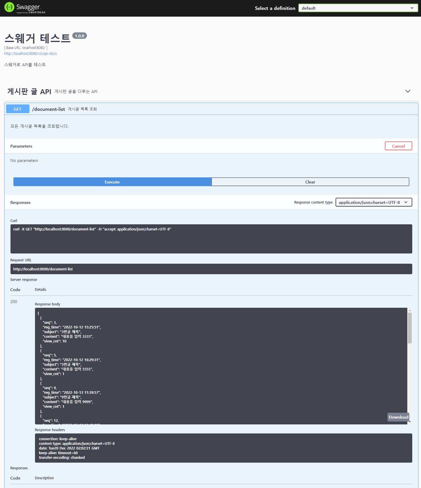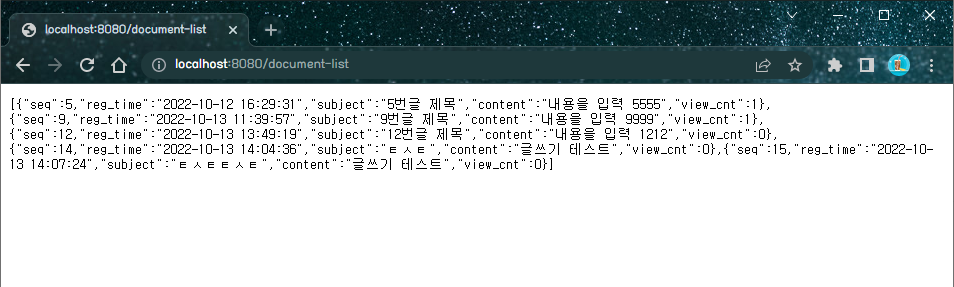 주소창에 http://localhost:8080/document-list를 입력해도 결과를 확인할 수 있다.
