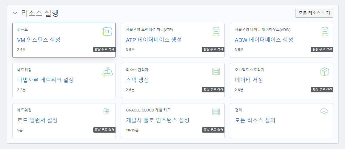 오라클 클라우드에 로그인하면 다음과 같은 화면이 나타난다.
