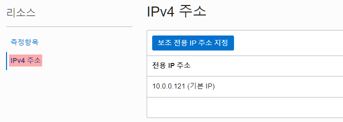 아래의 리소스 항목에서 'IPv4 주소'를 클릭한다.