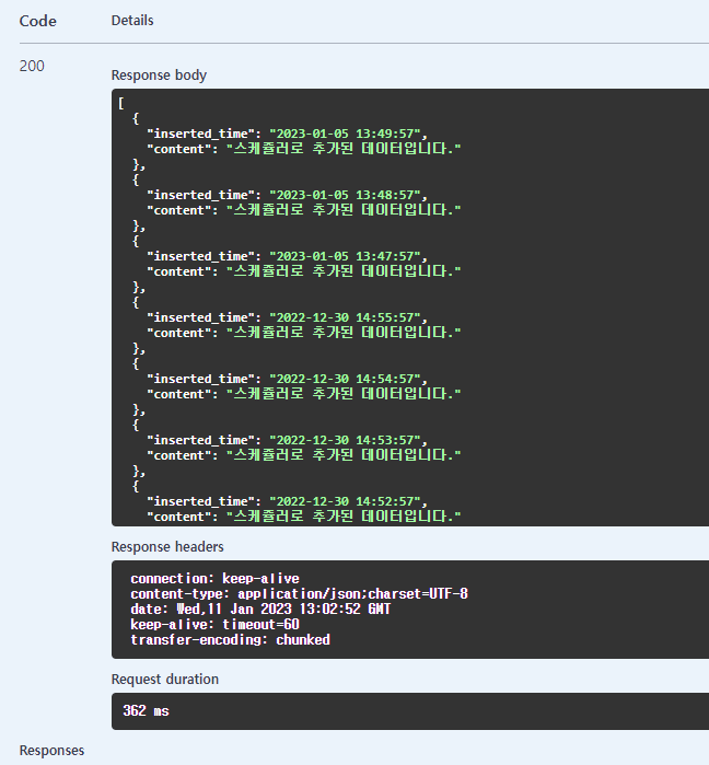 API가 정상적으로 동작하는 것을 확인할 수 있다.